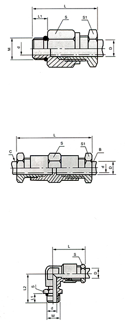 (一)JT系列卡管接頭適用于有色金屬管,編織尼龍管的連接.大工作壓力為1.0MPa. (二)氣管切斷后,管口修平去毛刺.將氣管插入頭內(一定要插到底),然后旋緊管帽.當管子已不能轉動時,再繼續旋緊1/3圈,即可牢固連接和密封. (三)該系列產品適用于兩種連接管,如果用硬質尼龍管的 貨時指明. *標記示例: ①:卡套式三通終端連接管 公稱通徑 ¢6MM JT-3T-Z6 M10×1 ②:卡套式三通終端雙徑管接頭 公稱通徑 ¢6MM B=8MM C=4MM JT-3T-Z6-8-4 M10×1