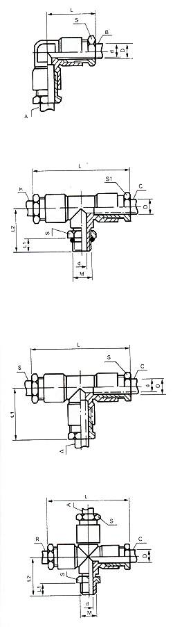 ●卡套式四通終端管接頭