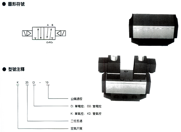 二位五通滑閥供氣動裝置中改變氣流方向的基本元件。K25D系列是機械部聯合設計產品。 |